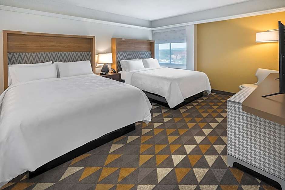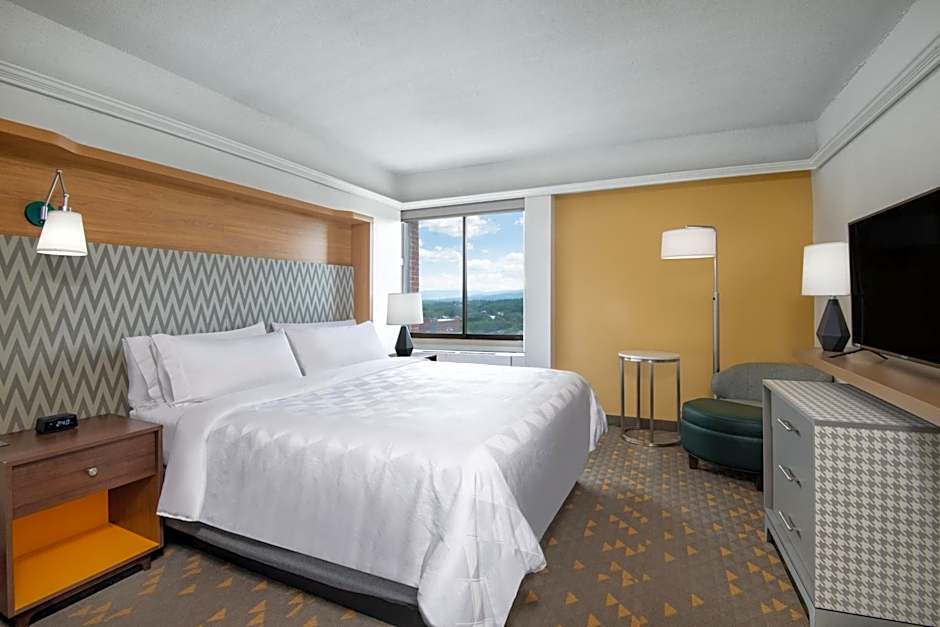 The Holiday Inn & Suites Pittsfield-Berkshires offers a range of room options including King Rooms with mobility accessible roll-in showers, TwinDouble Rooms, King Rooms, King Suites, Twin Rooms with mobility accessible tubs, and Queen Rooms with two Queen beds. All rooms are non-smoking and have a size of 301 sqft. The accommodations vary in bed sizes, with options of one King bed, two Double beds, two Twin beds, or two Queen beds. Rooms can accommodate 2 adults and 1 child or 4 adults and 3 children.