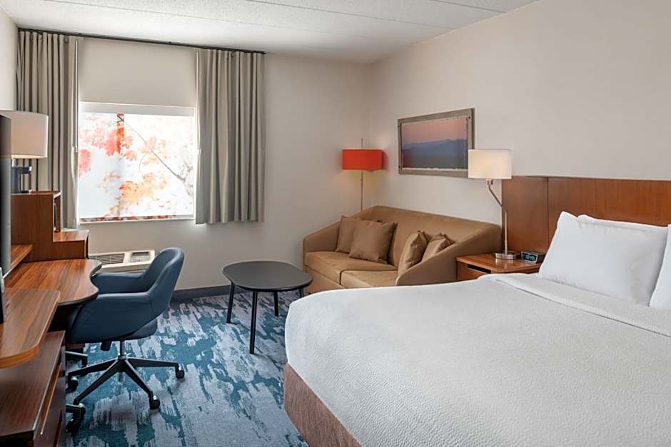 The Fairfield Inn Boston Tewksbury/Andover offers King Rooms, which are double occupancy rooms with a size of 280 square feet. Smoking is not allowed in these rooms. Each King Room has one King size bed and can accommodate up to 4 adults and 3 children.