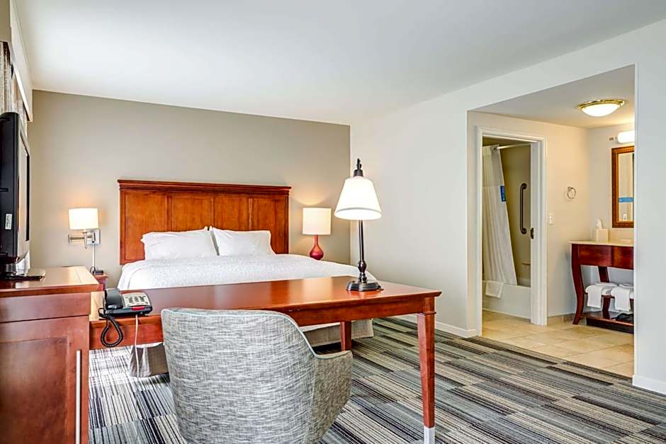 This room with 1 king bed has barrier-free space and features lowered amenities for accessibility purposes.