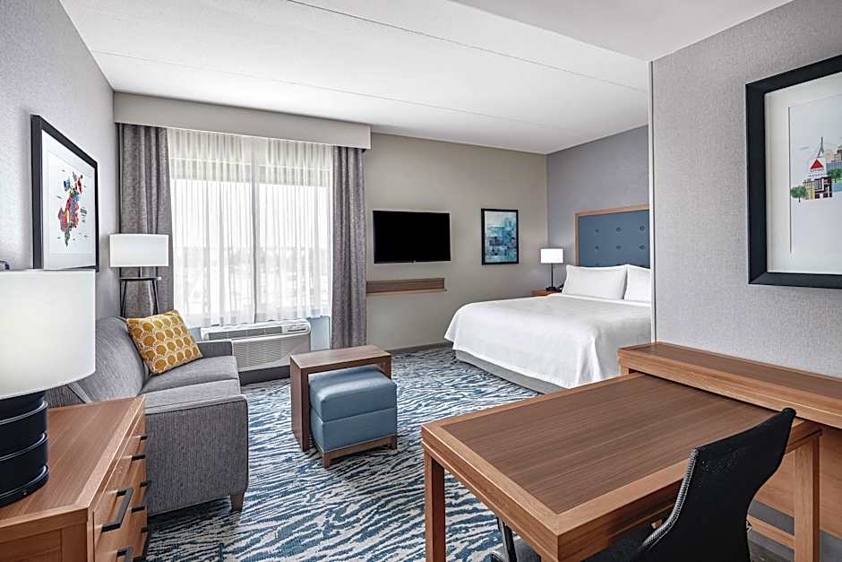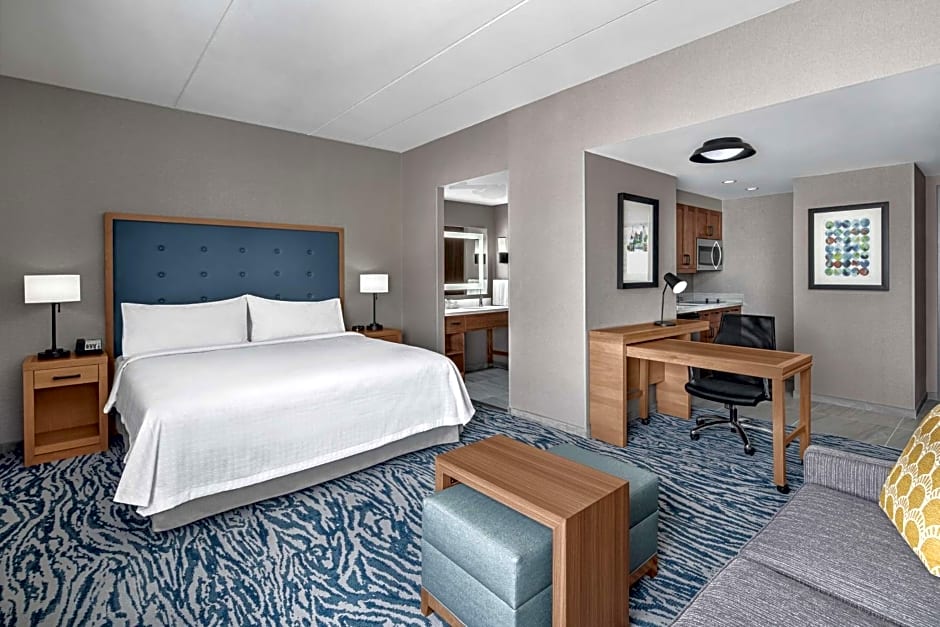 The hotel offers a variety of suite options, including the Premium King Studio Suite, One-Bedroom King Suite, King Studio Suite (Hearing Accessible/Non-Smoking), and King Studio Suite. All rooms are non-smoking and have a room size of 301 sqft. Each suite can accommodate 4 adults and 3 children, and includes 1 King size bed and 1 Sofa Bed.