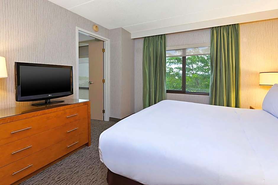 The Embassy Suites by Hilton Auburn Hills offers various types of suites with different bed configurations. These suites can accommodate between 4 to 6 adults and 3 to 5 children. All rooms are non-smoking and include amenities like a king or double bed and a sofa bed. Some suites are specifically designed for hearing accessibility.