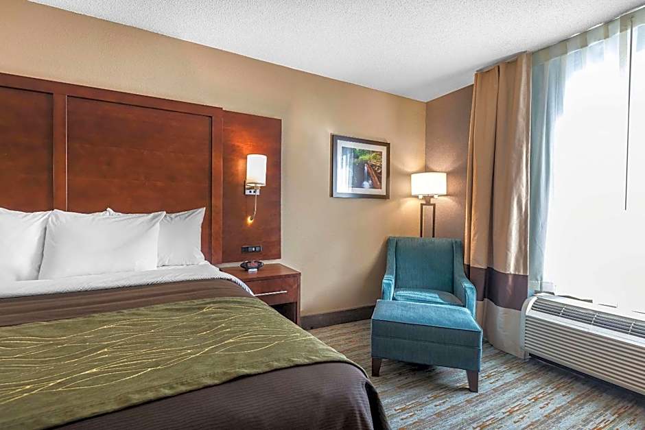 The Comfort Inn Bay City - Riverfront offers a variety of room options. These include King Rooms, Queen Rooms with 2 Queen Beds, and King Suites. Rooms range in size from 474 to 484 square feet. Smoking is not allowed in any of the rooms. The King Rooms accommodate 2 adults and 1 child, while the Queen Rooms with 2 Queen Beds can accommodate 4 adults and 3 children. The King Suites also accommodate 2 adults and 1 child. All rooms have either a King size bed or 2 Queen size beds.