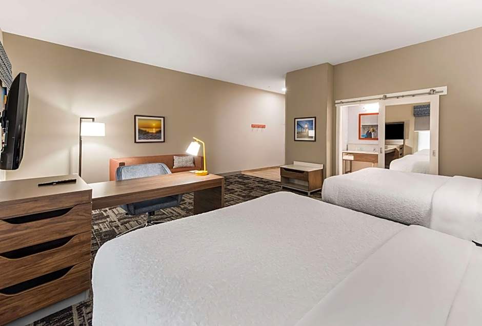 The Hampton Inn & Suites Benton Harbor, MI offers various types of rooms including King Rooms, Queen Studio Suites with Two Queen Beds, Queen Rooms with Two Queen Beds, King Rooms with Hearing Accessibility, and Queen Rooms with Mobility Accessibility. Smoking is not allowed in any of the rooms. The occupancy of the rooms ranges from 2 adults and 1 child to 4 adults and 3 children. The bed sizes include King and Queen beds, with some rooms also featuring a sofa bed. The room sizes vary from 366 sqft to 549 sqft.