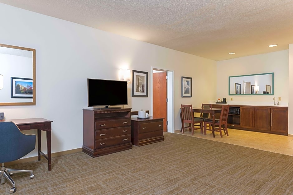 Separate living/dining room, two HDTVs, sofa bed, desk, microwave, refrigerator, free WiFi Upgrade to this spacious two-room suite which features a separate living area with a plush sofa bed, easy chair with ottoman and a 32-inch HDTV. The bedroom features a king-sized bed and an additional HDTV. Catch up with work at the large desk and surf the web with free WiFi access. This suite also features a microwave, refrigerator and coffeemaker, as well as a dining table with four chairs to make you feel at home. In the bathroom, you'll enjoy fluffy towels, a WaterPik showerhead and curved shower rod that allows for more light and space.