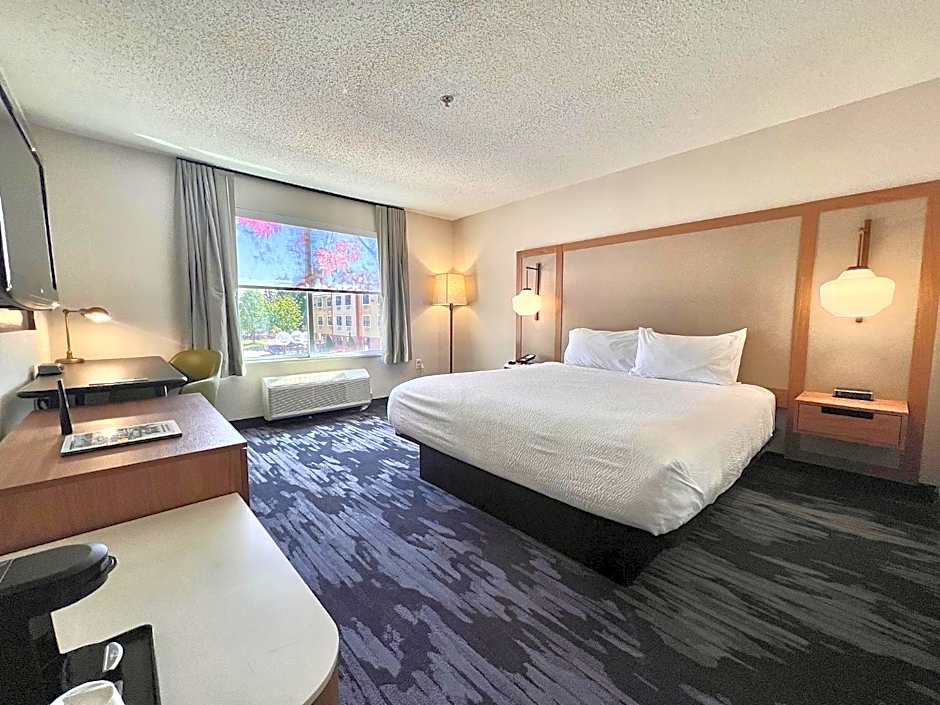 At the Fairfield Inn & Suites Detroit Farmington Hills, the available room types include a King Room with a whirlpool, a King Suite with a sofa bed, a Queen Room with two Queen beds, and a King Room. Smoking is not allowed in any of the rooms. The King Room with a whirlpool and the King Suite with a sofa bed have larger occupancy capacities, accommodating up to 5 adults and 4 children. The other rooms can accommodate up to 4 adults and 3 children.