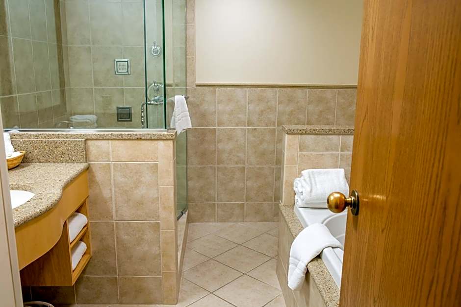 This suite features a 2-person spa bath and a seating area with sofa bed.