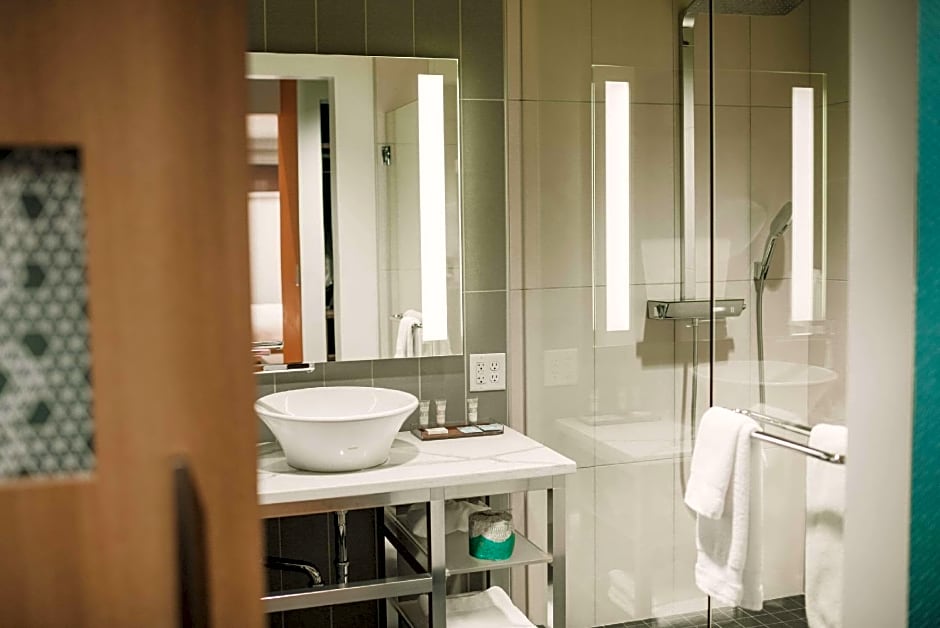 Perfect downtown location, easily walkable to Van Andel Arena and other local venues. Stylish decor (they say each room is different; I would have loved to have seen some of the other layouts), very comfortable beds and bedding, security room card swipes required in the elevator, which is a great safety feature. We got very lucky finding free street parking, but the parking garage is just around the corner if necessary. Good coffee with real creamers (not powder!), hair dryer, iron/board in the room. Big beautiful walk in shower.