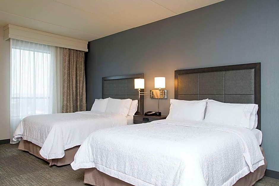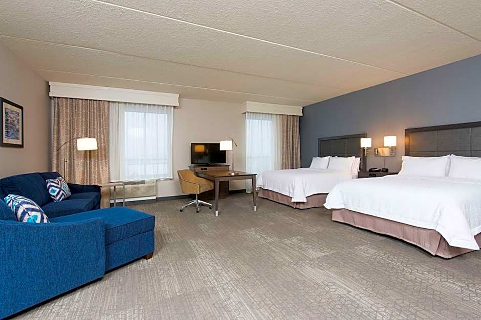 The Hampton Inn & Suites Grand Rapids Downtown offers a variety of room types. There are Queen Rooms with Two Queen Beds, King Rooms with Sofa Beds, King Rooms, King Rooms with Mobility Accessible features, Queen Studio Suites with Two Queen Beds, King Studio Suites with Sofa Beds, King Rooms with Hearing Access/Non-Smoking, and Queen Rooms with Two Queen Beds with Hearing Access/Non-Smoking. All rooms are non-smoking and have a size of 323 sqft. The occupancy ranges from 2 adults and 1 child to 6 adults and 4 children, depending on the room type.