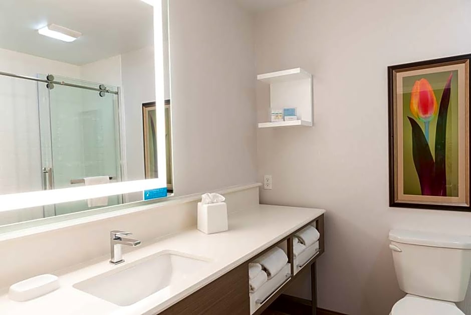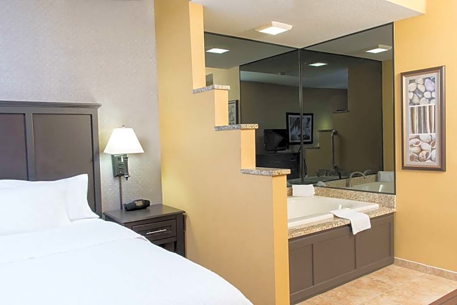 This mobility and hearing accessible, non-smoking room features one king-sized bed, and an accessible roll-in shower. The room also has a visual alarm and notification devices for the doorbell or door knock and incoming phone calls. The room features comfortable soft seating, microwave, refrigerator, a HDTV, and easy to operate alarm clock/radio. The free WiFi will help you stay connected while on the road. You'll also enjoy the convenience of having a coffeemaker with tea service and iron/ironing board in your room. Any corresponding photo may not reflect the specific accessible room type or room feature. For your Comfort Cozy Hampton Bed Duvet Covers Easy to Set Alarm Clock Radio Ergonomic Desk Chair HD Channels In-Room Movie Channel LCD Flat Panel TV Night Lights in Bathroom Roll-in Shower TV - 32 Inch LCD HD Waterpik(R) Showerhead For your Convenience Coffee Maker Complimentary Hot Breakfast Doorbell w/ Audio/Strobe alert Hairdryer High Speed Internet-No Charge Iron Iron/Ironing Board Microwave Mini Refrigerator Purity BasicsTM Bath Amenities