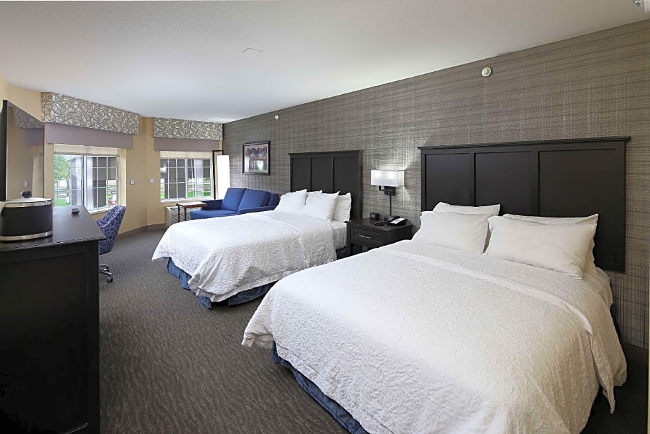 The Hampton Inn Holland offers a variety of room types including Queen Rooms with Two Queen Beds and Bath Tub, Queen Rooms with Two Queen Beds, Queen Suites, One-Bedroom King Suites, One-Bedroom Queen Suites with Two Queen Beds, and King Rooms. All rooms are non-smoking and range in size from 312 sqft to 398 sqft. The rooms can accommodate different numbers of adults and children, with bed options including sofa beds, queen size beds, and king size beds.