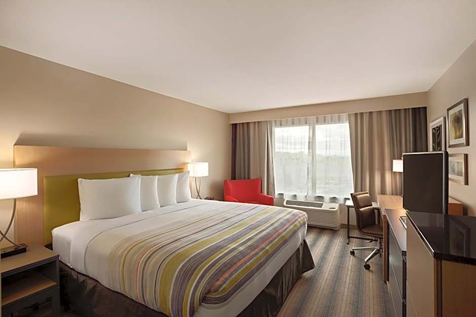 The Country Inn & Suites by Radisson in Houghton, MI offers a variety of room types including King Rooms, One-Bedroom Queen Suites with Two Queen Beds and a Sofa Bed, King Studio Suites with a Sofa Bed, and Queen Rooms with Two Queen Beds. All rooms are non-smoking and range in size from 312 sqft to 388 sqft. Each room type can comfortably accommodate multiple adults and children.