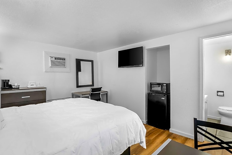 We were tired and It was late. My husband said , do you have a room or not? We were given one way on back of motel where family lived. Quiet but bed was sloppily made, sheets on one corner hanging on floor.
