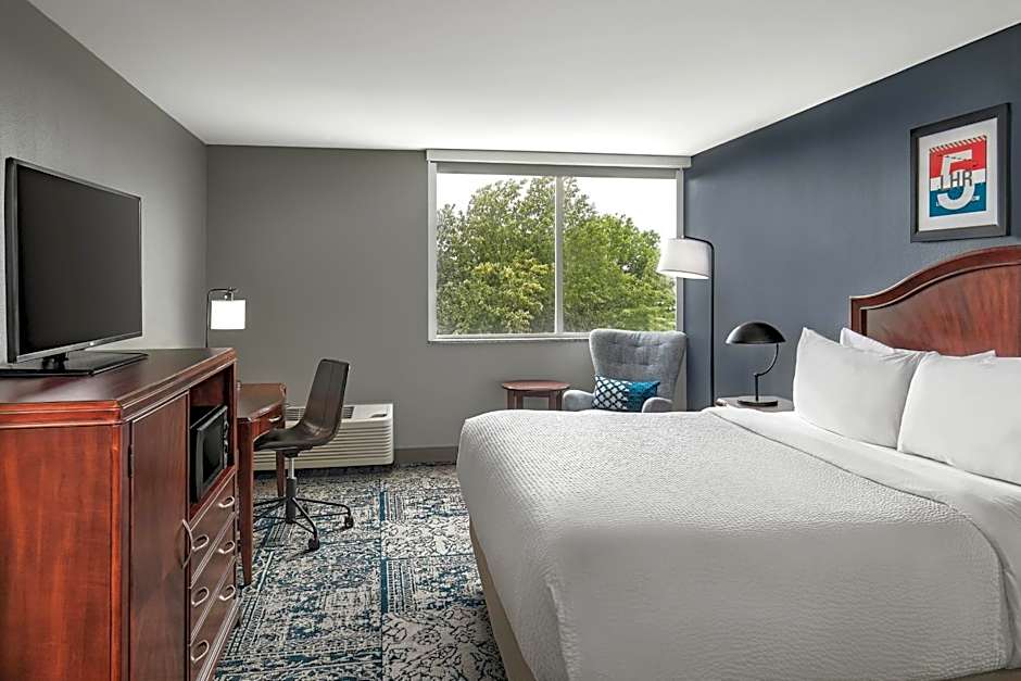 With spacious and comfortable room options available, such as the Larger Guest room with 1 King bed or the Guest Room with 2 Queen beds, you'll have plenty of space to relax and unwind. The rooms are smoke-free, ensuring a fresh and pleasant environment, and can accommodate both adults and children. So whether you're traveling alone, as a couple, or with the whole family, you'll find a room that suits your needs at the Four Points by Sheraton Kalamazoo.