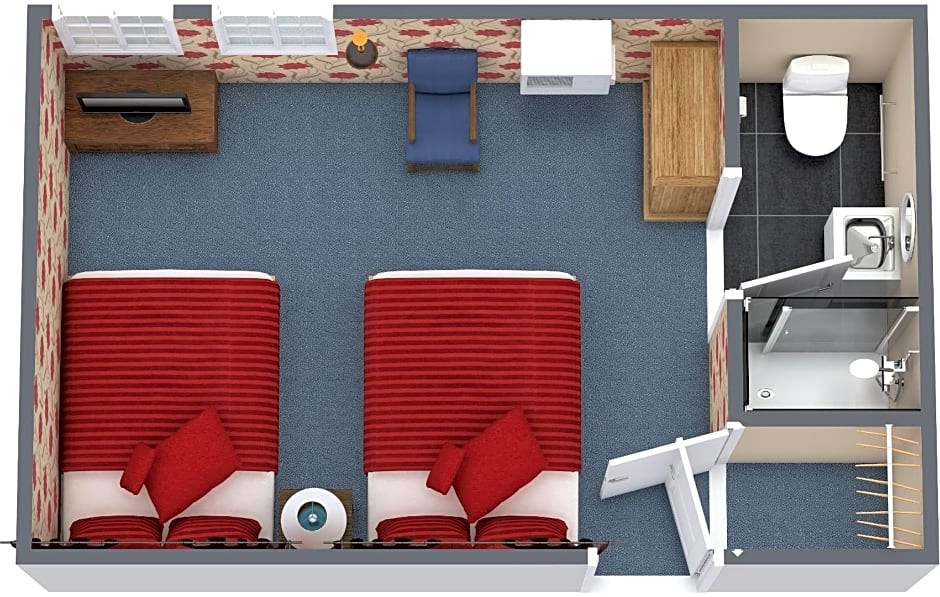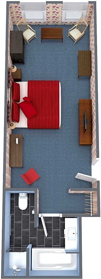 This deluxe room includes a view of the harbor and a full size bathroom with a bathtub/shower and a vanity area. A cable TV and a hairdryer are provided as well.