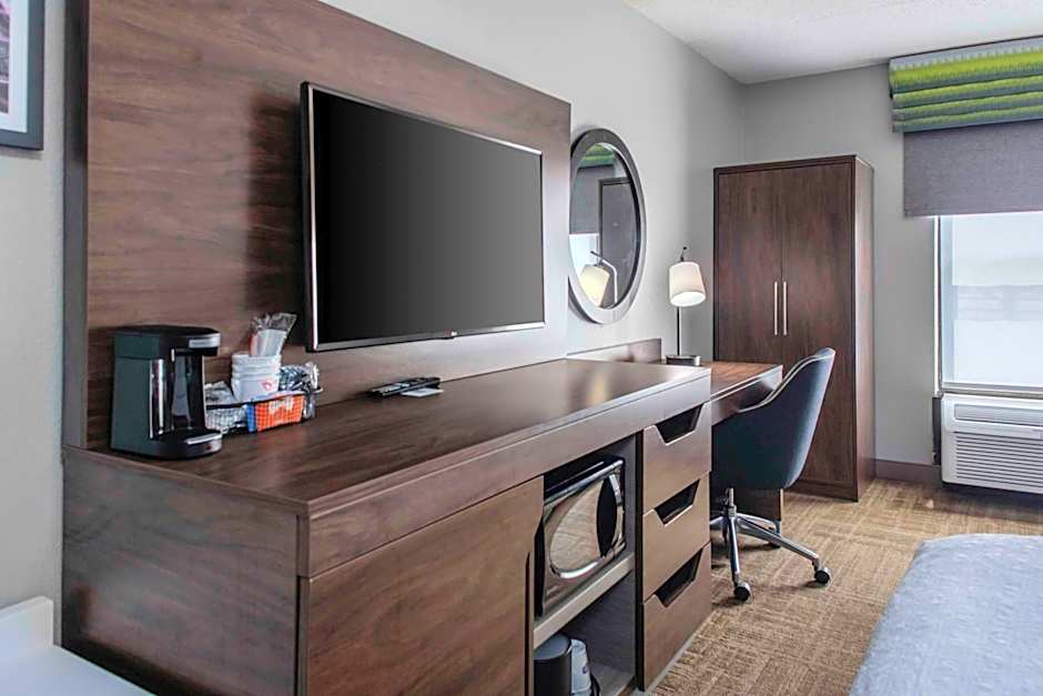 32-inch HDTV, work desk, coffeemaker, free WiFi access Unwind in this non-smoking guest room featuring one double-sized, clean and fresh Hampton bed®. Relax and watch a movie or your favorite TV show on the 32-inch HDTV. Make yourself a coffee with the coffeemaker. If you have work to do, make use of the free WiFi access and large work desk. The bathroom offers plush towels and a WaterPik showerhead with a curved shower rod, providing more space and light in the shower.