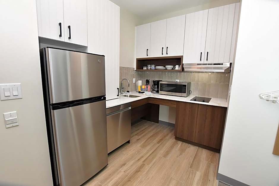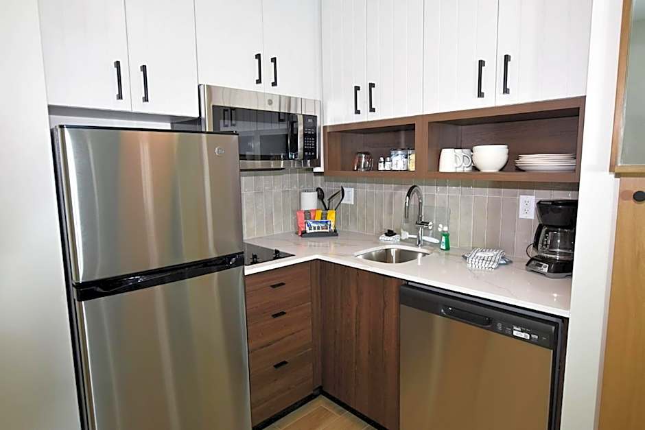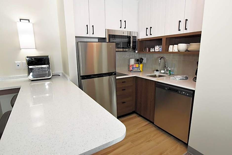 Providing free toiletries, this suite includes a private bathroom with a bath, a shower and a hairdryer. The well-fitted kitchen has a stovetop, a refrigerator, a dishwasher and kitchenware. This wheelchair accessible suite features air conditioning, a seating area with a flat-screen TV and a toilet with grab rails. The unit offers 1 bed.