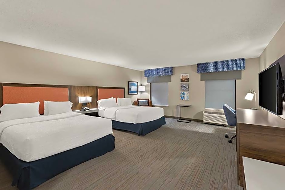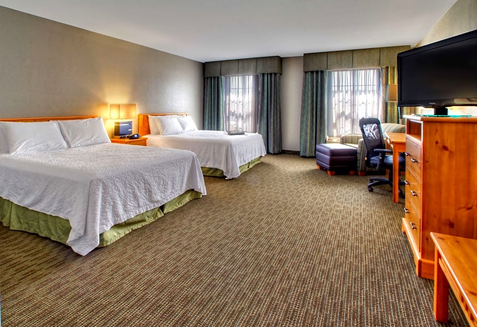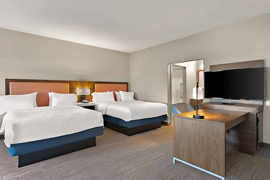 32-inch LCD HDTV, work desk, sofa bed, coffeemaker, free WiFi Relax in this bright and spacious studio suite featuring two clean and fresh Hampton beds®. Enjoy a movie on the 32-inch LCD TV with HD channels or sleep additional guests on the cozy sofa bed. This suite offers a convenient work space with a desk and free WiFi. Refresh yourself in the bathroom with fluffy towels and a shower featuring a curved shower rod for added space and light. Enjoy a delicious coffee from the coffeemaker included in this studio.