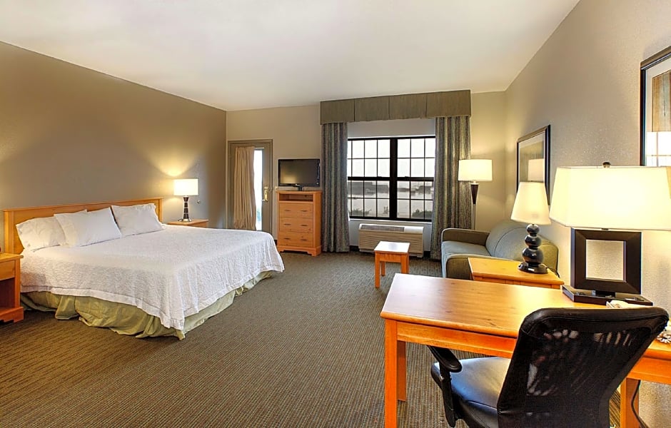 32-inch LCD HDTV, work desk, sofa bed, coffeemaker, free WiFi, whirlpool tub Enjoy a relaxing night in this spacious studio suite with a clean and fresh Hampton bed®. Watch a movie on the 32-inch LCD TV with HD channels or relax on the sofa bed. This suite also has a coffeemaker. This suite contains a large work desk and free WiFi to help you keep on top of work. The bathroom features plush towels and a shower with a curved shower rod for added space. A whirlpool bathtub is included in this suite.
