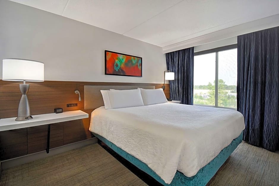 Living room, sofa bed, refrigerator, microwave, desk, ergonomic chair, TV, WiFi Make yourself at home in this one-bedroom king suite with a Garden Sleep System bed. Catch up with work at the large desk with ergonomic chair. Spread out in the living room and watch the TV from the sofa bed. Stay connected with complimentary WiFi. This room features a Keurig® coffeemaker, microwave and refrigerator, perfect for preparing and storing any snacks you might need. Special touches include complimentary remote printing and daily newspaper delivery, Monday to Friday.