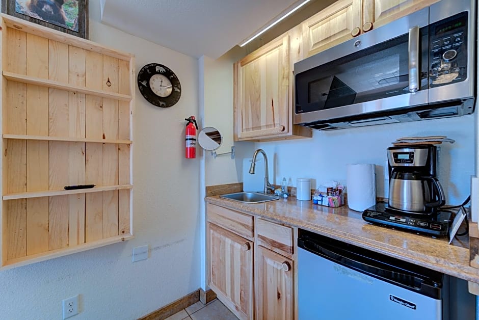 The Grand Traverse Motel offers a King Room (Upper) with a single room type, accommodating 2 adults with a King size bed. Smoking is not allowed in this 301 sqft room. Another option is the Double Queen (ground) room, a double room type with 2 Queen size beds and a capacity of 2 adults. This room is also 301 sqft and smoking is not allowed.