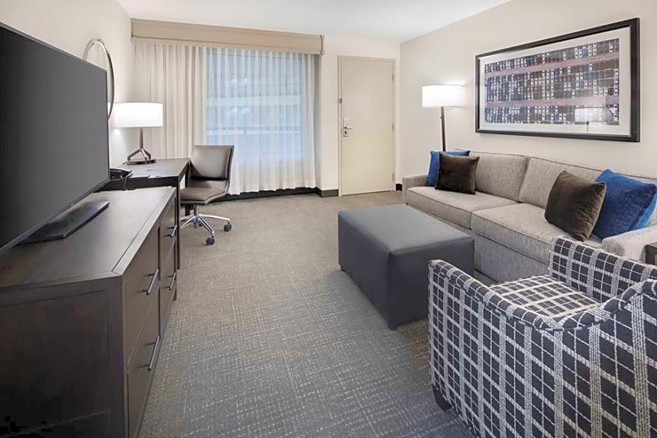 Separate living room, sofa bed, 2 HDTVs, WiFi, refrigerator, microwave, activity table Enjoy your stay in Detroit in this spacious two-room suite which features a bedroom with 2 double beds and a 34-inch HDTV, and a separate living room with a sofa bed, armchair, and a 37-inch HDTV. A refrigerator and microwave will allow you to make and keep snacks, and if you need to check your emails WiFi access is available in the suite (fees apply).