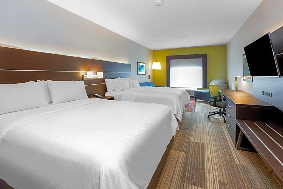 The Holiday Inn Express Hotel & Suites Woodhaven offers a variety of room types including TwinDouble, Suite, Double, and Quadruple. The rooms range in occupancy, accommodating 2 to 7 adults and 1 to 4 children. Smoking is not allowed in any of the rooms. Bed sizes vary, with options including King, Queen, Double, and Twin beds. The room size for all the rooms is 323 sqft.