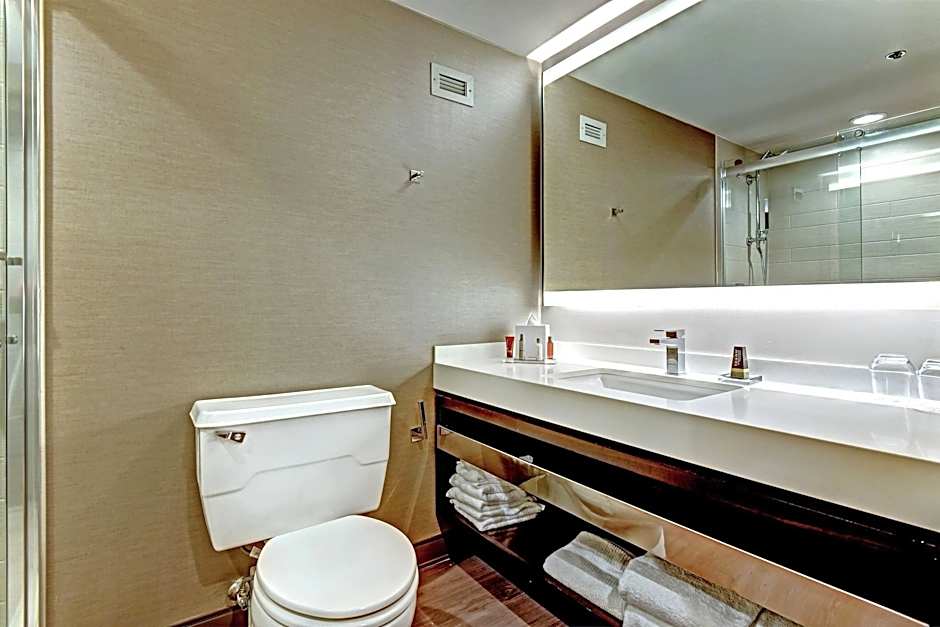 The Crowne Plaza Suites MSP Airport offers a variety of rooms, including Standard Rooms with either a King bed or Two Queen beds. Premium King Rooms with either a King bed or a King bed and a Sofa bed are also available. There are also rooms with mobility accessible features, such as a tub or a roll-in shower. The Junior King Suite offers a larger room size at 495 sqft. Smoking is not allowed in any of the rooms.