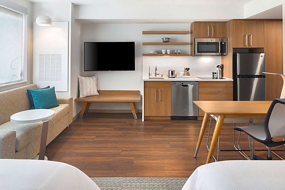 The hotel offers a variety of room types including Studio rooms with either two Queen beds or one King bed, as well as Guest rooms with one King bed. Most rooms have a sofa bed, with the exception of the Guest Room. The room sizes range from 312 sqft to 388 sqft. Smoking is not allowed in any of the rooms. The occupancy for the rooms varies, accommodating between 2 to 4 adults and 1 to 4 children.