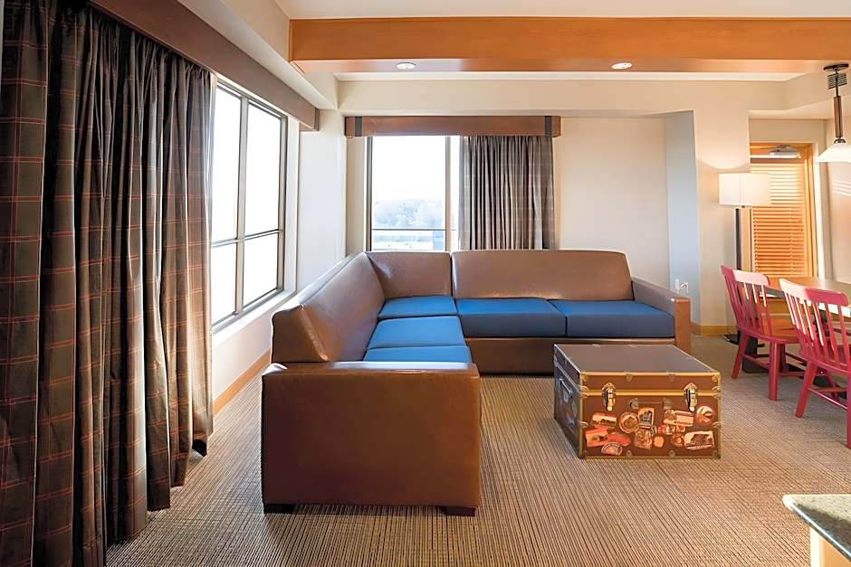 With 100 reviews, Great Wolf Lodge in Bloomington is known for its exceptional amenities such as the free water park access, perfect for a splash-tastic vacation. Kids will love the dedicated pool area while adults can take advantage of the bar and on-site restaurant. The hotel also offers air conditioning, a 24-hour front desk, and non-smoking rooms for a comfortable stay. Additionally, the hotel provides a kid-friendly buffet and free toiletries for guests.
