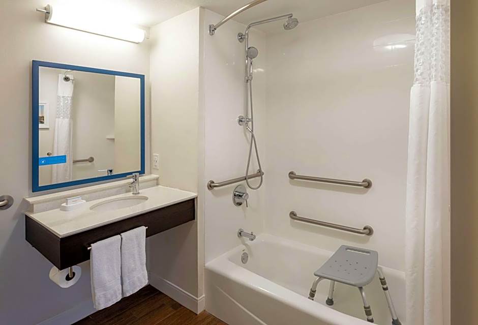 This room offers handicap-accessible amenities, including an adapted bathroom with safety grab bars.