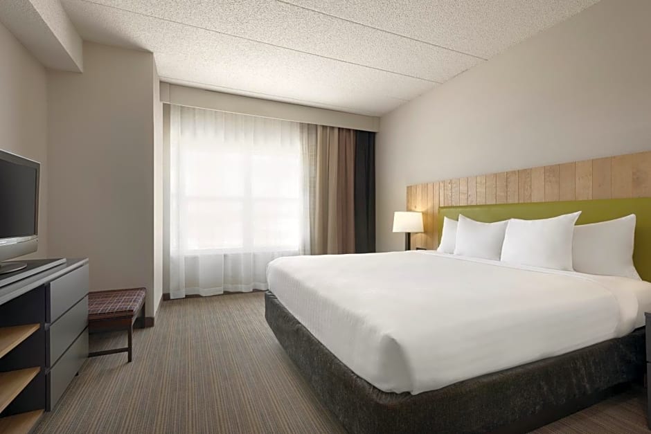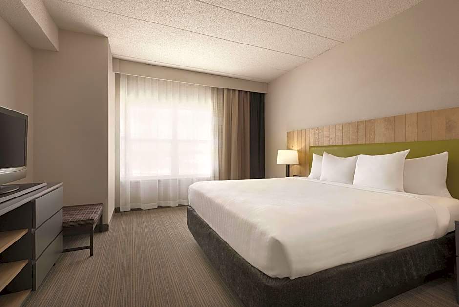 Accommodations span a variety of layouts, from king-bed rooms to suites with two queen beds and a sofa bed, and studios featuring a king bed plus a sofa bed. All options are non-smoking and equipped with air conditioning for comfortable stays.