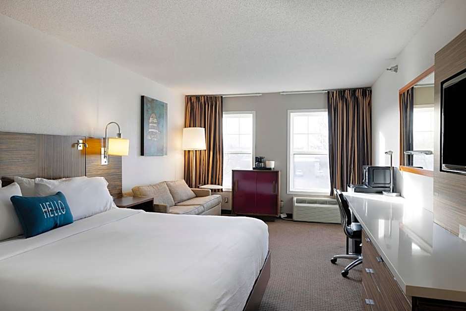 This is such a cute welcoming Lodge! We absolutely loved the decor, free cookies, coffee bar and breakfast and dining area were great! It has a sauna (we didn’t use) but did relax in the hot tub and watched a movie. Very relaxing. The location and convenience was amazing. There’s a bank (atm for places that are cash only was very handy) Walmart across the street as well as a gas station. Staff was very friendly and helpful. Will definitely be staying here again if get back up this way!