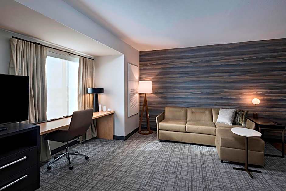 The Residence Inn by Marriott St. Paul Downtown offers two types of rooms. The One Bedroom King Suite with Sofa Bed is a larger suite with a room size of 527 sqft, accommodating up to 4 adults and 3 children. It has a king size bed and a sofa bed and does not allow smoking. The King Studio with Sofa Bed is a smaller studio with a room size of 431 sqft, also accommodating up to 4 adults and 3 children. It has a king size bed and a sofa bed and also does not allow smoking.