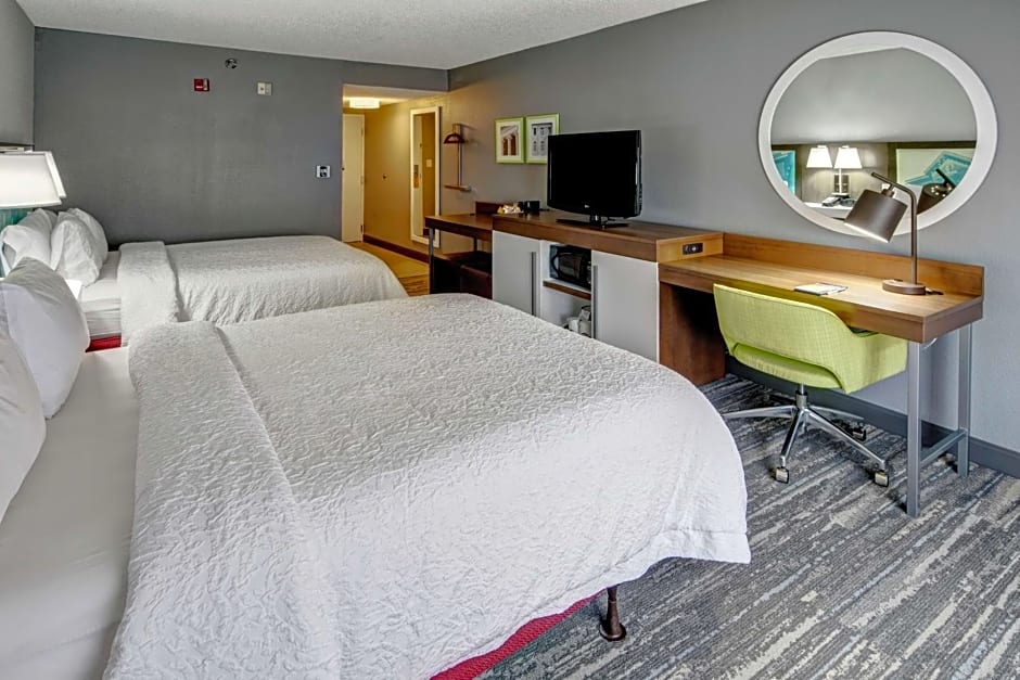 Any corresponding photo may not reflect the specific accessible room type or room feature. This hearing accessible, nonsmoking room features two queen sized bed(s). The room also has a visual alarm and notification devices for the doorbell or door knock and incoming phone calls. The room features our luxurious Clean and Fresh Hampton Bed, comfortable soft seating, microwave, refrigerator, and easy to operate alarm clock/radio. In the bath you will enjoy a WaterPik shower head and curved shower rod. The free high speed internet access will help you stay connected while on the road. If you prefer not to work at the desk, you can use the convenient lapdesk instead. You'll also enjoy the convenience of having a coffee maker with tea service and iron/ironing board in your room.