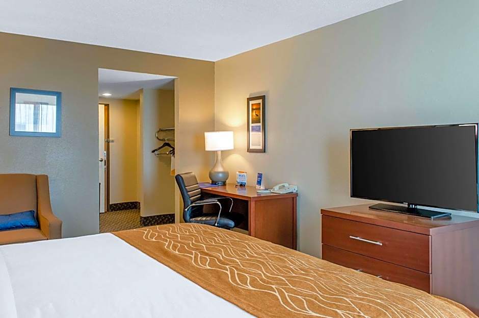This King Suite features a flat-screen TV, a desk and a private bathroom.