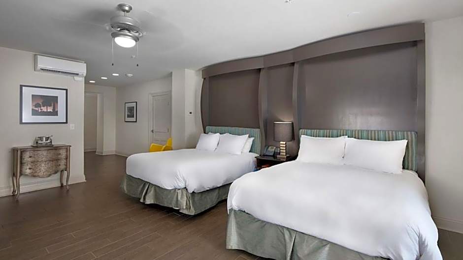This room features highly rated comfortable double queen beds, and an oversize walk-in shower.