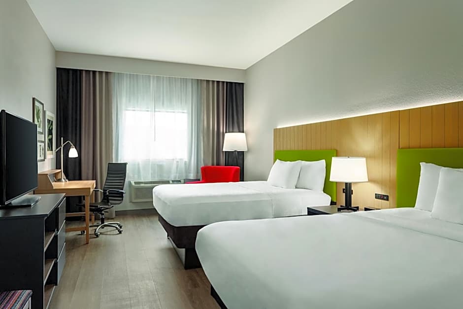 The hotel offers King Studios, which have a King size bed and can accommodate 3 adults and 2 children. They also have Studios with Two Queen Beds, which can accommodate 5 adults and 4 children, and a Studio with Two Queen Beds and a Sofa Bed, which can also accommodate 5 adults and 4 children. All rooms are non-smoking.