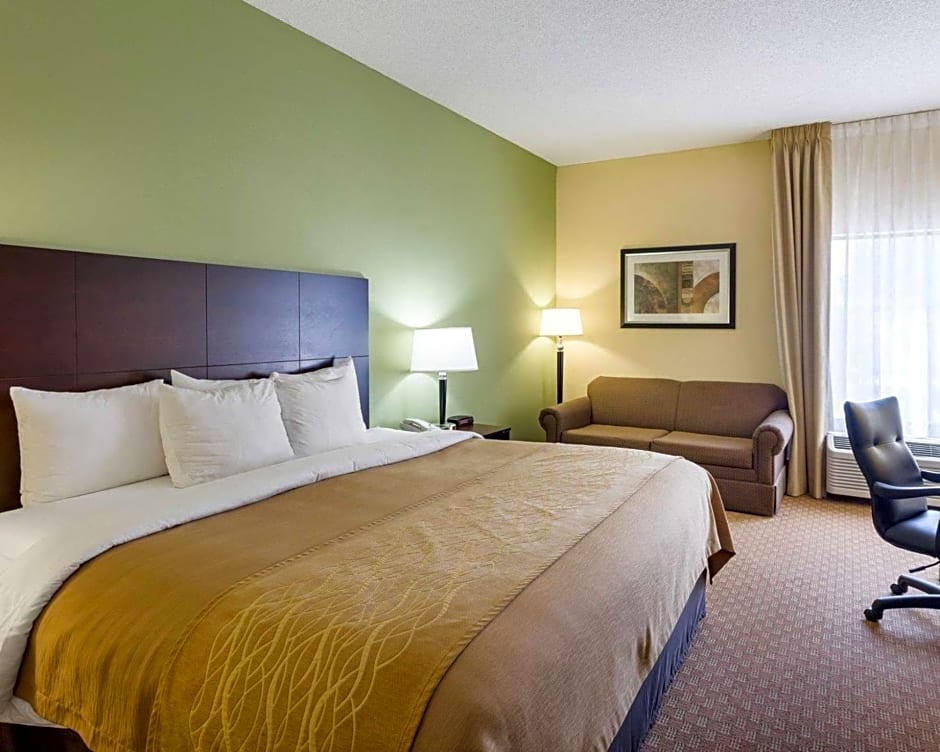 The Comfort Inn Horn Lake - Southaven has a variety of room options available. They offer King Rooms, Queen Rooms with two Queen beds, and accessible rooms for both King and Queen rooms. All rooms are non-smoking and have a size of 280 sqft. The King Rooms accommodate up to 3 adults and 2 children, while the Queen Rooms accommodate up to 4 adults and 3 children. The King Rooms have a single King bed, while the Queen Rooms have two Queen beds.