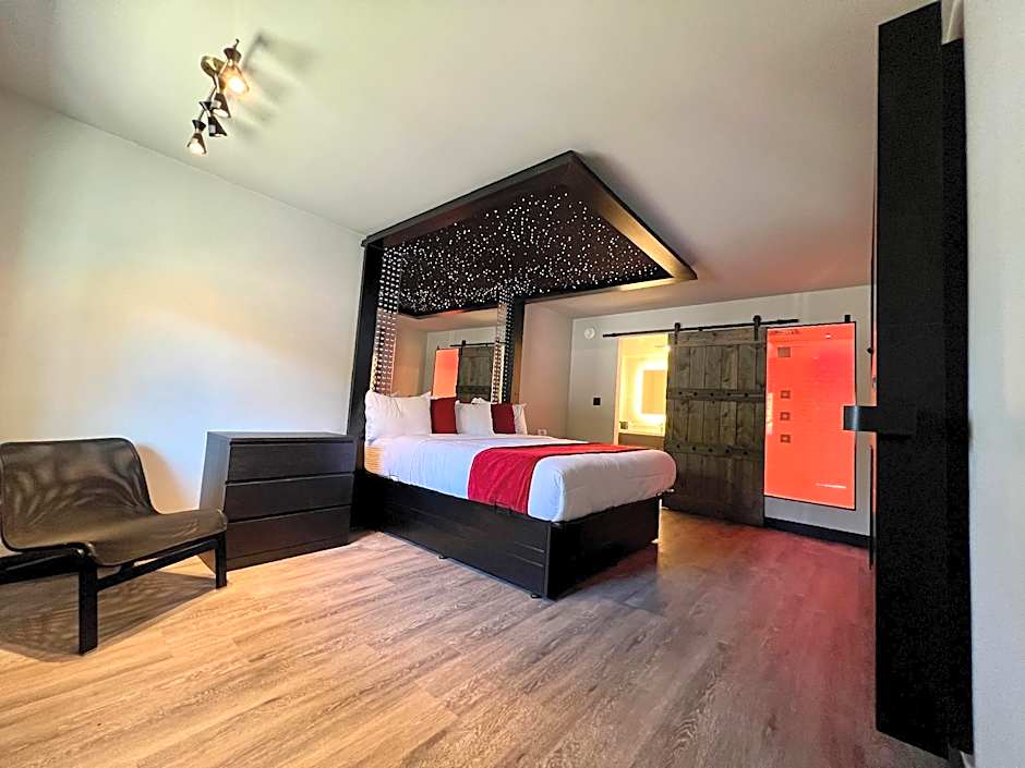 The hot tub and fireplace are the special features of this suite. This suite comes with 1 living room, 1 separate bedroom and 1 bathroom with a bath and free toiletries. This suite has air conditioning, heating and a flat-screen TV with streaming services. The unit has 2 beds.