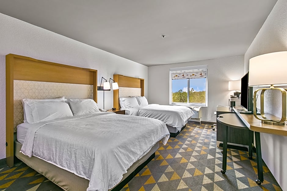 The Holiday Inn Express Hotel & Suites Lucedale offers a variety of rooms including Queen Rooms with Two Queen Beds, Double Rooms with Two Queen Beds and Hearing Mobility Accessible Tub, King Rooms, Standard Rooms, and Two Queens Rooms with Roll-in Showers. All rooms are non-smoking and have a size of 301 sqft. The Queen and Double Rooms can accommodate 4 adults and 3 children, while the King and Standard Rooms can accommodate 2 adults and 1 child.