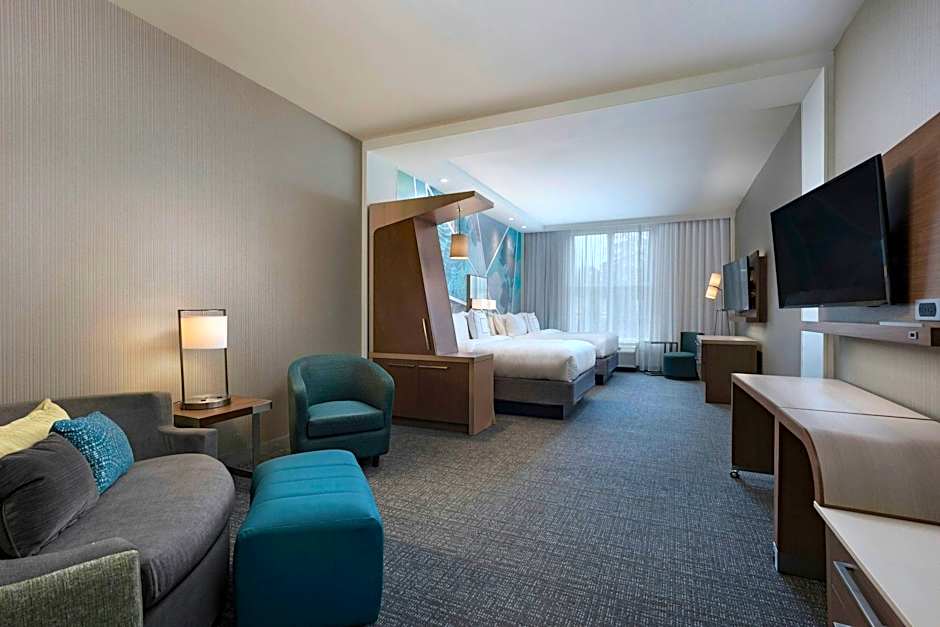 Room options include suites with 2 Queen beds and a sofa bed (539 sqft) and suites with a King bed and sofa bed (571 sqft), plus standard King Rooms (355 sqft) and Double Rooms (size varies). Other configurations include rooms described as 2 Queen with sofa bed and additional variations, offering flexible layouts to suit different travel parties. All accommodations are non-smoking and maintain a comfortable climate with air conditioning for year-round comfort.
