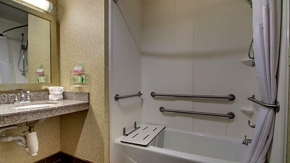 Browse the web whenever you please from this top floor room with free high speed wireless internet access. Sit back in the lounge chair and watchHBOon the 32 inch TV or make a snack with the microwave and fridge to enjoy at the table. Grab bars visual alerts and strobe fire alarm are included