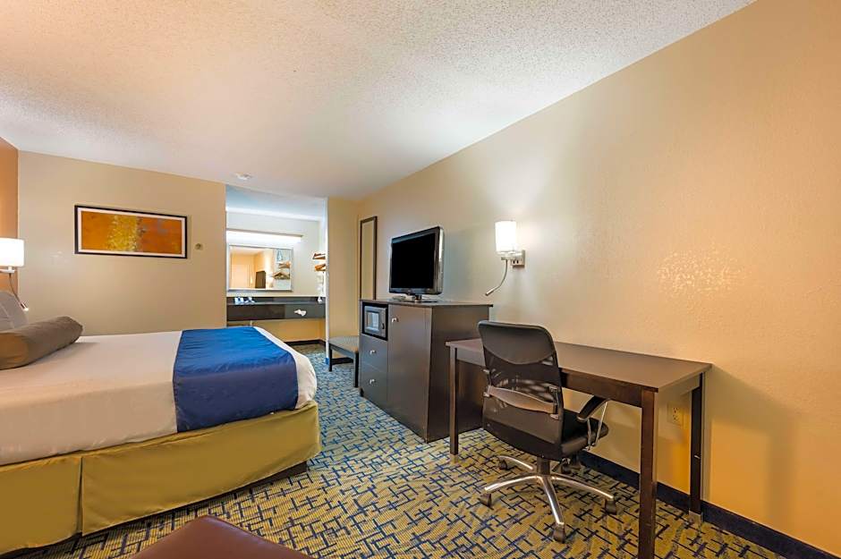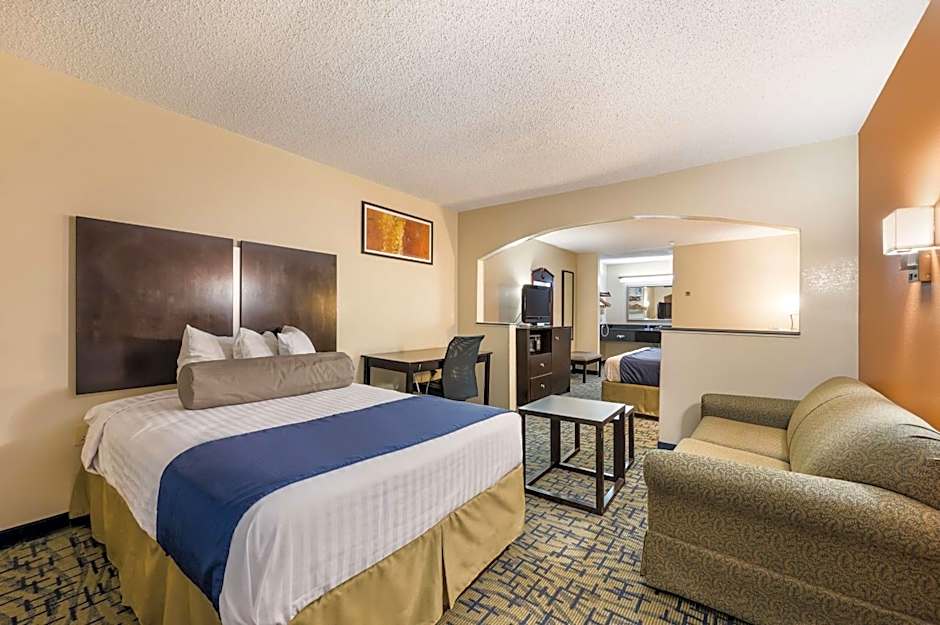 The SureStay Hotel by Best Western Meridian offers a variety of room options. These include King Rooms (non-smoking and smoking) with a King size bed, Double Rooms (non-smoking and smoking) with two double beds, and a Family Suite. The King Rooms and Double Rooms accommodate 2 adults and 1 child, while the Family Suite accommodates 2 adults and 3 children. The room sizes range from 301 sqft to 398 sqft. Smoking is not allowed in any of the rooms.