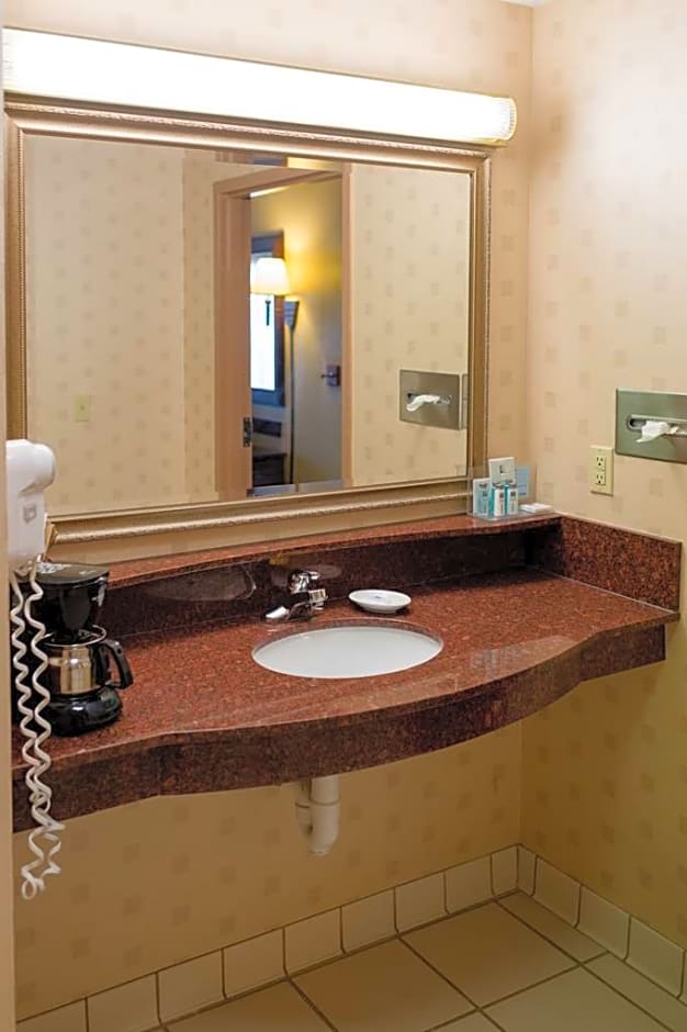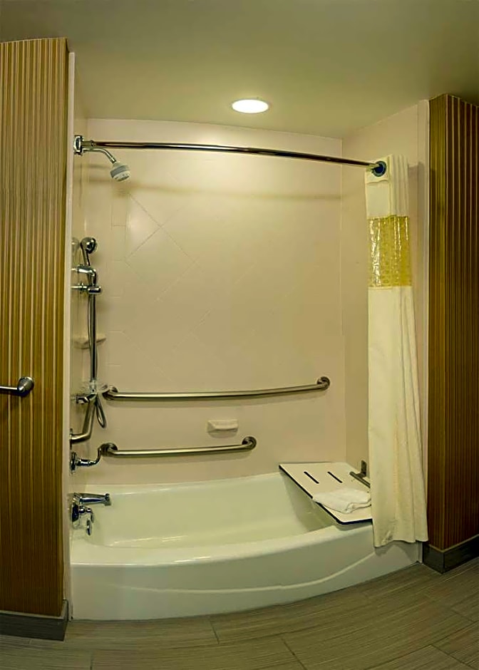 This mobility accessible, one-room, non-smoking studio suite features one king-sized bed, and an accessible bath tub. The room also has a visual alarm, and notification devices for the doorbell or door knock and incoming telephone calls. The suite features include a sofa bed, microwave, refrigerator, comfortable soft seating, a HDTV, and easy to operate alarm clock/radio. The free WiFi will help you stay connected while on the road. If you prefer not to work at the desk, you can use the convenient lapdesk instead. You'll also enjoy the convenience of having a coffee maker with tea service and iron/ironing board in your room. Any corresponding photo may not reflect the specific accessible room type or room feature.