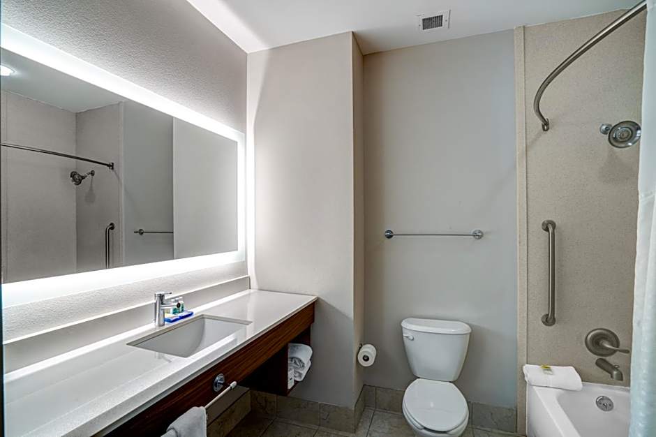 The toilet in the bathrooms are all very low to the ground which makes it difficult to use without assistance if you have any kind of hip,knee, or leg injury. Consider replacing with chair height.