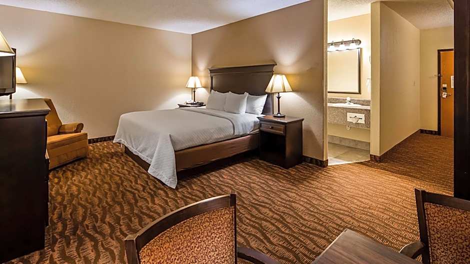 The Best Western Music Capital Inn offers a variety of room types including King Rooms with Spa Bath, Queen Suites with Two Queen Beds, King Suites with Spa Bath, King Rooms with Roll-in Shower, and Queen Rooms with Two Queen Beds. All rooms are non-smoking and range in size from 312 sqft to 624 sqft. The occupancy of the rooms varies, accommodating between 2 and 6 adults, as well as 1 to 4 children. The beds provided include King size beds, Queen size beds, and some rooms also have a sofa bed.