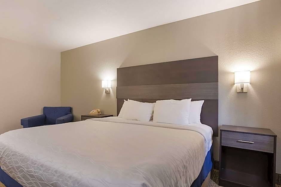 Great location, friendly staff, good breakfast, king room was a nice size, was clean for the most part, free parking, bed & room were comfortable. Your choice on room service. Could check in late. Had a tiny coffee pot, microwave, and a mini fridge, ice machine close, has elevators.