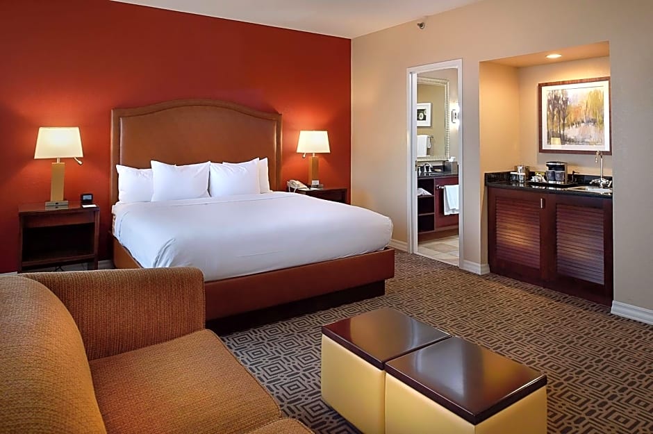 Living room, wet bar, sofa bed, refrigerator, 37-inch LCD TV, work area, WiFi Enjoy extra space and comfort in this two-room suite with a king-sized Sweet Dreams® bed and a separate living room. Relax and entertain guests in the sitting area with a sofa bed, a wet bar and a refrigerator. Watch movies on the 37-inch LCD TV or catch up on business at the large desk with an ergonomic chair and WiFi access. The suite features a stylish bathroom with a shower and indulgent bath products. Thoughtful additions include premium coffee and complimentary remote printing services.