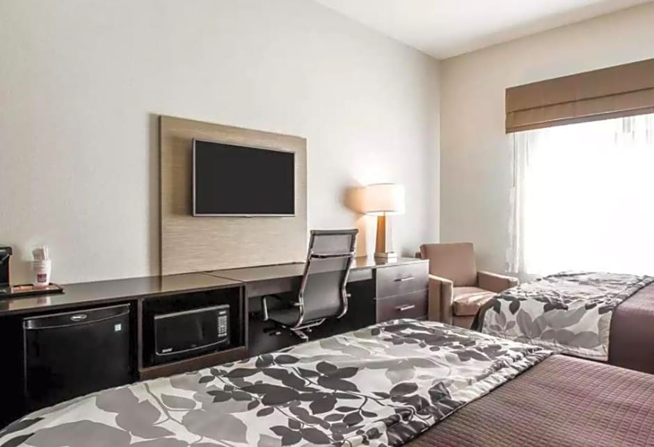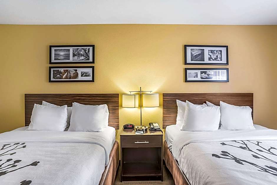 The types of rooms available at Sleep Inn & Suites Hannibal include King Suites, Standard Queen Rooms with Two Queen Beds, King Rooms, and Queen Rooms with Two Queen Beds. Smoking is not allowed in any of the rooms. The occupancy ranges from 2 adults and 1 child to 4 adults and 3 children. Bed sizes vary between King size beds and Queen size beds. The room sizes for the Standard Queen Room and King Suite with Sofa Bed are 301 sqft.