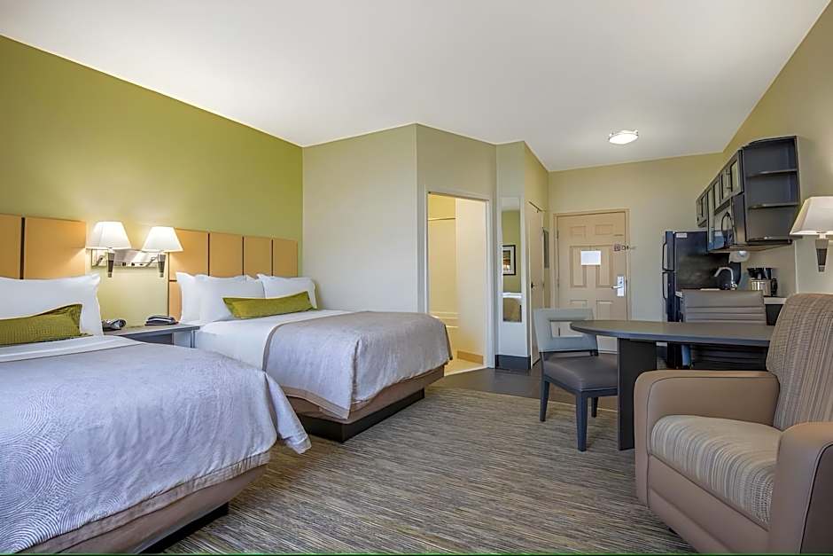 Room options span a range from Studio, Queen to Studio, 2 Double, with some layouts offering a kitchen or kitchenette. The roster includes Studio, 2 Double; Studio, 2 Double, Kitchen; Studio Suite, King, Kitchen; Studio Suite, Queen, Kitchen; Studio Suite, Queen, Sofa Bed; Studio, Kitchenette; Suite Deluxe; Suite, 1 Bedroom; and Standard Room. These configurations suit different travel parties, from solo travelers to small groups, with bed setups like a King bed in Studio Suite, King, Kitchen or a Queen bed in Studio Suite, Queen, Sofa Bed.